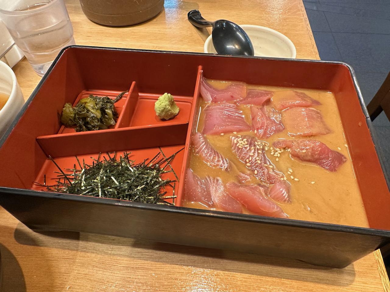 처음에는 카이센동으로 시작해서 중간에 오차즈케를 만들어 먹는 스타일 입니다.