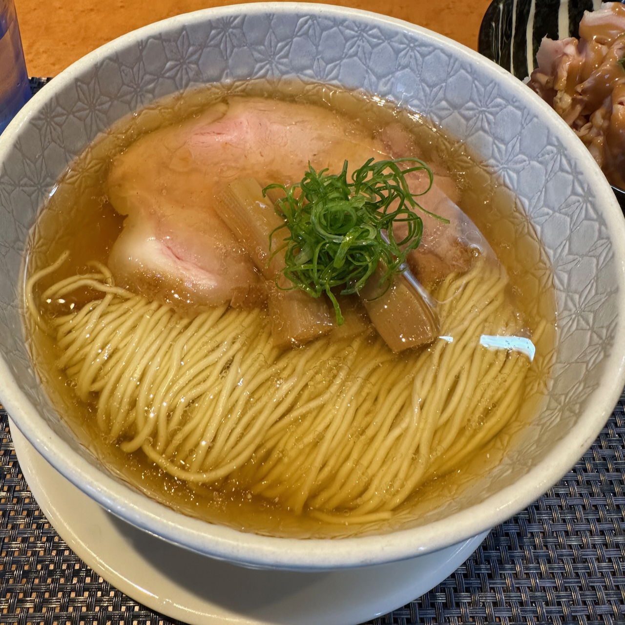 塩煮干しそば 820엔 + 焼豚どんぶり御飯 420엔 을 주문.