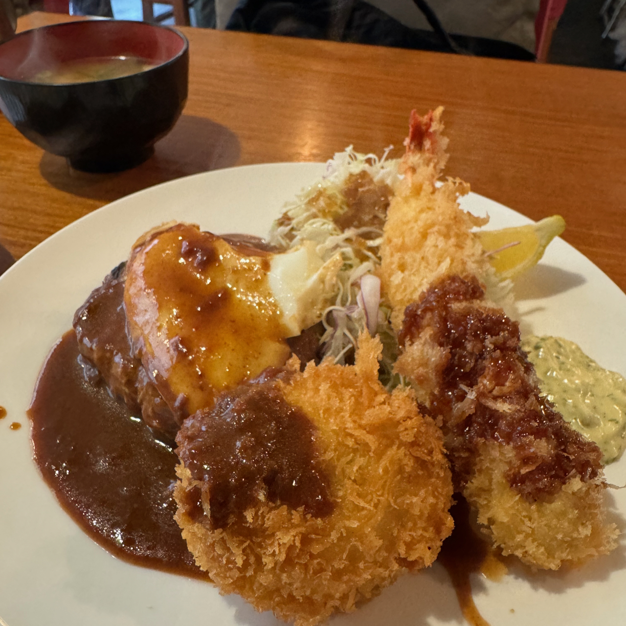 에비후라이 + 카니크림 고로케 + 함바그 를 주문.