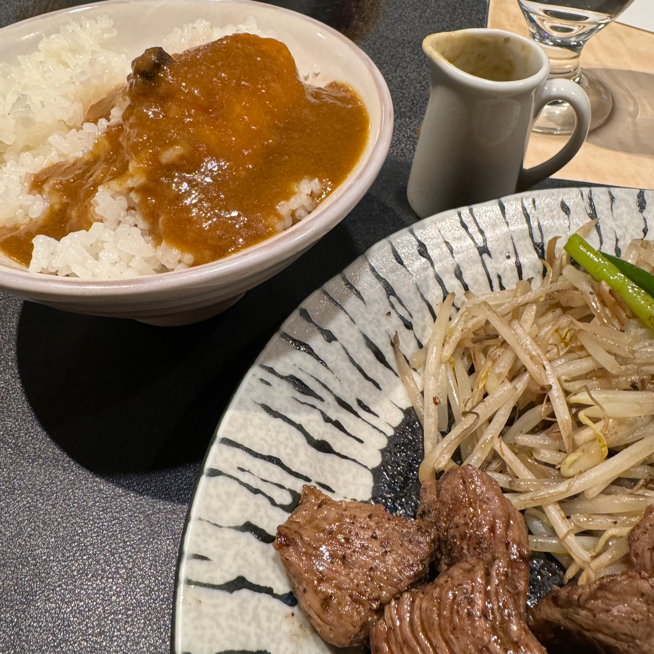 パンドラステーキ定食 150g과 ひと口カレー를 주문.