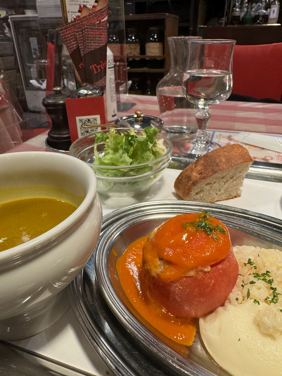 평일 점심에만 하는 히가와리 소테가 특히 가성비가 좋은데요, 토마토 니쿠즈메가 궁금해서 주문.