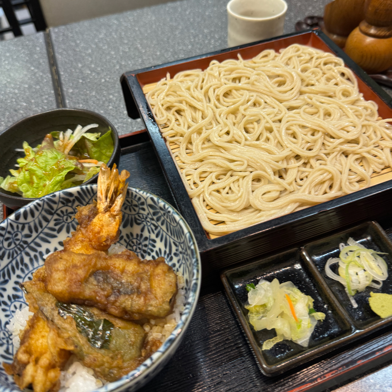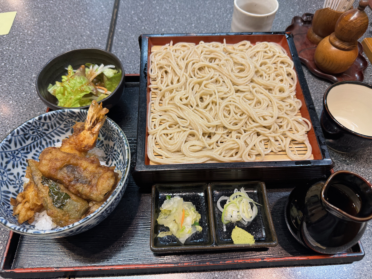 미니텐동 세트 1,150엔. 소바는 세이로를 선택.