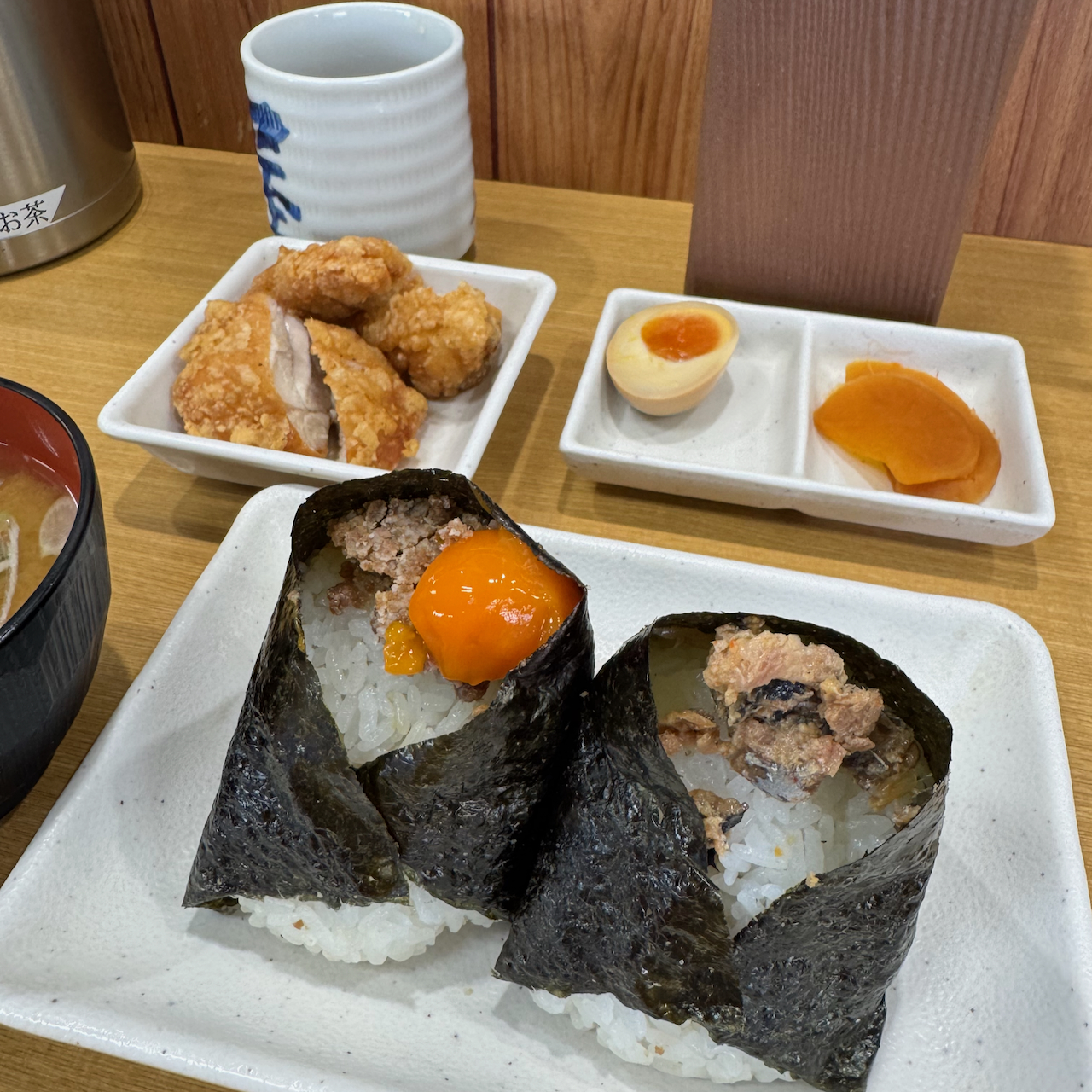 오니기리2개 + 가라아게 + 미소시루 세트를 주문