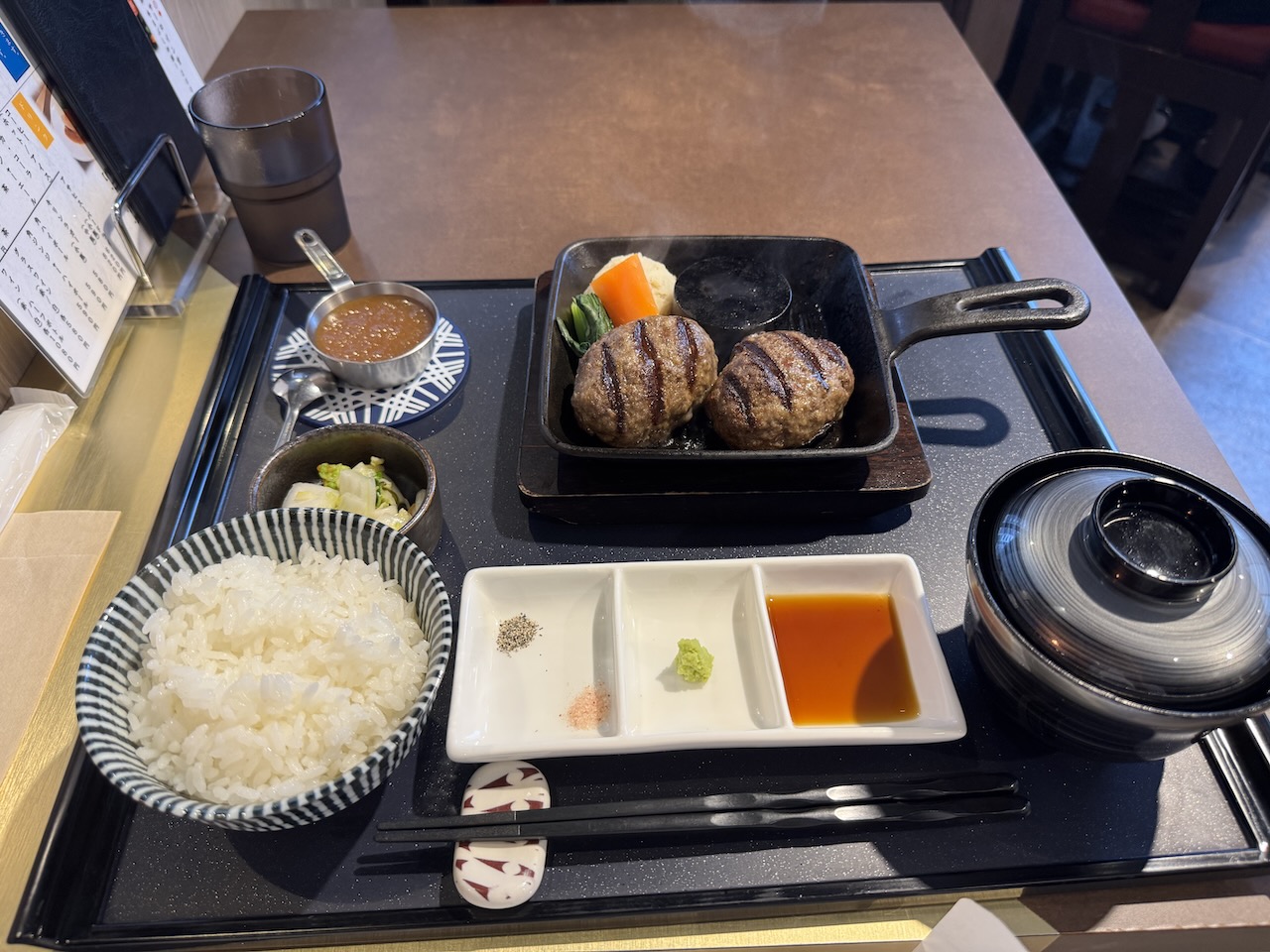 점심의 인기 메뉴는 함바그 세트 2개 또는 3개.