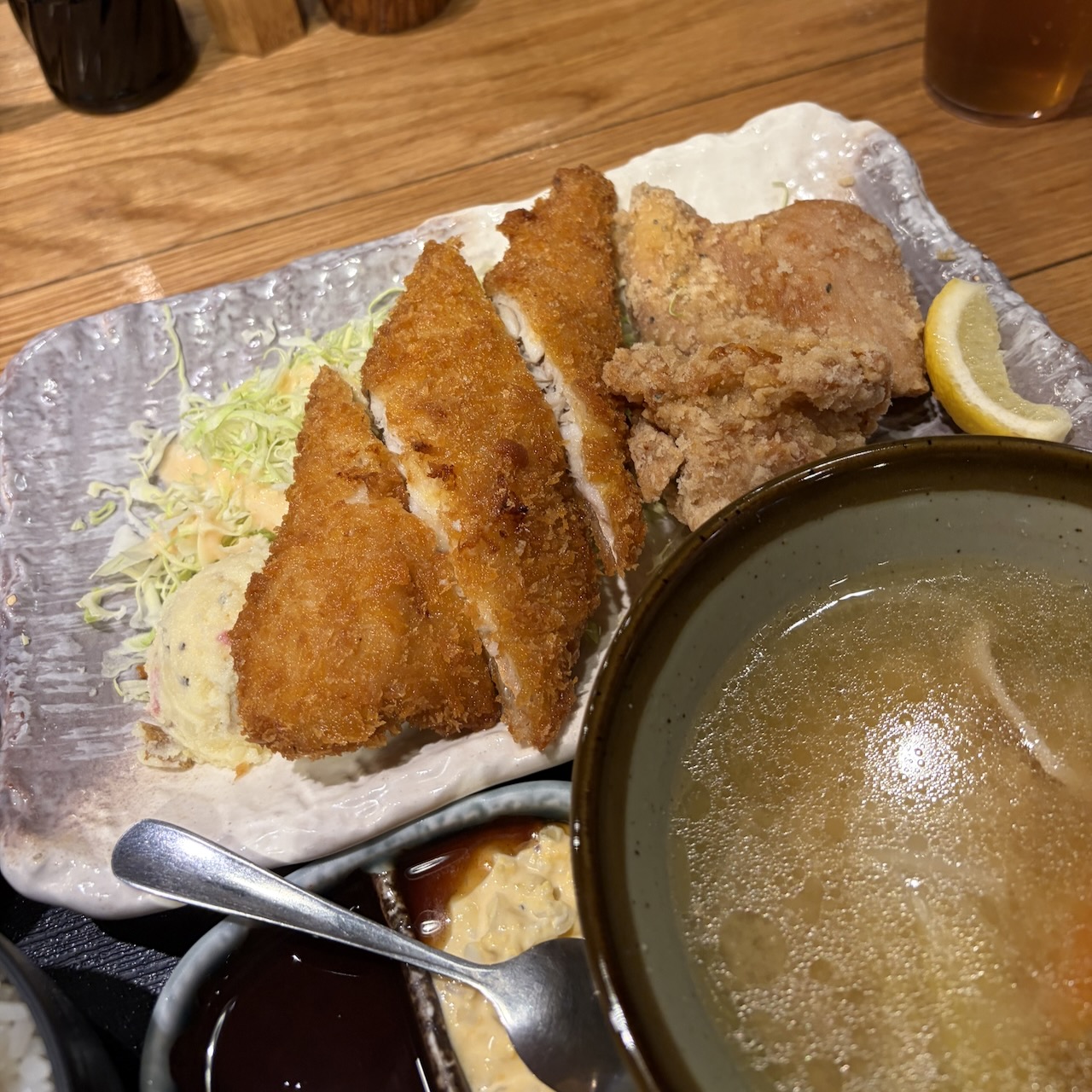 두가지를 다 맛볼수 있는 호케후라이 + 장기 정식을 주문.