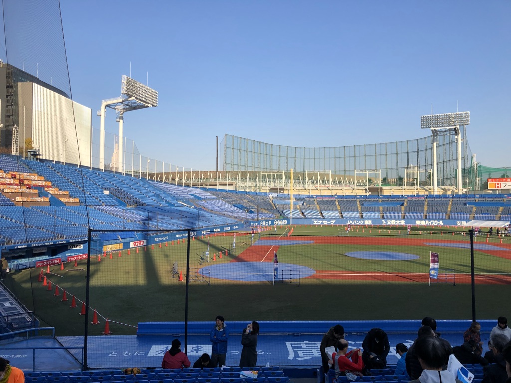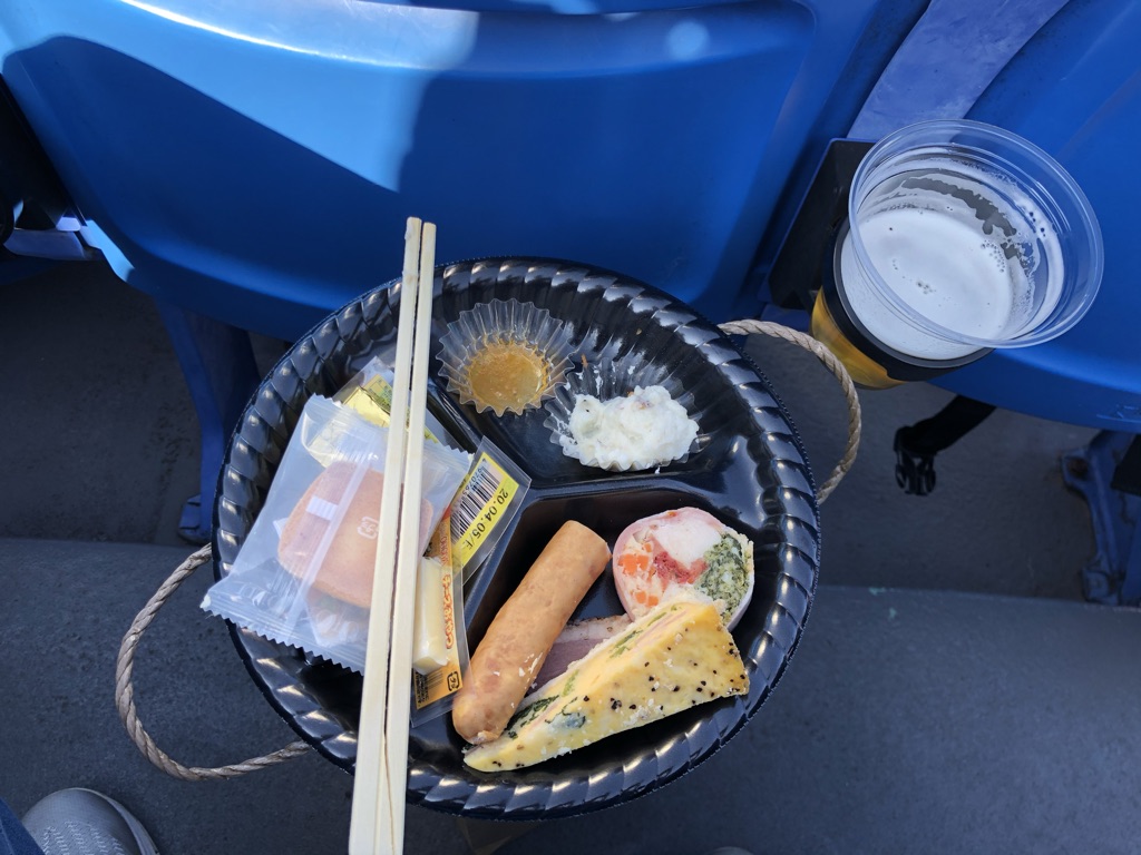 메이지 진구 구장에서 뛰고난 후, 간단한 안주와 와인 3잔이 제공됩니다.