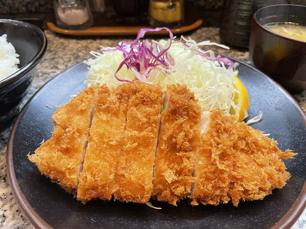 평일 점심 로스카츠정식 1,350엔.