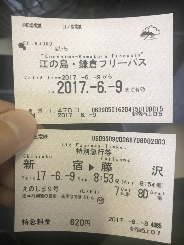 신주쿠에서 오다큐선으로 후지사와까지 가서 에노시마선으로 갈아 탑니다.