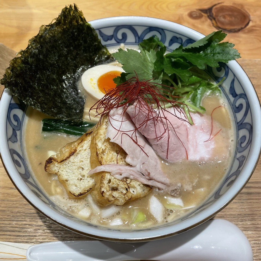 특이한 라멘입니다. 닭, 돼지 스프가 베이스 이긴 한데 酒粕(사케카스)가 사용되었습니다.