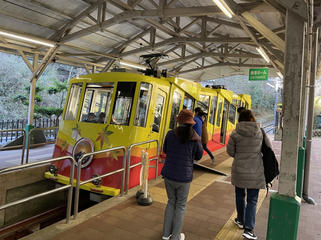 타카오산구치역에서 내립니다.