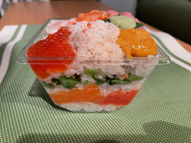 밥 위에 뿐만 아니라 아래까지 꽤 여러가지의 신선한 재료가 숨겨져 있습니다.