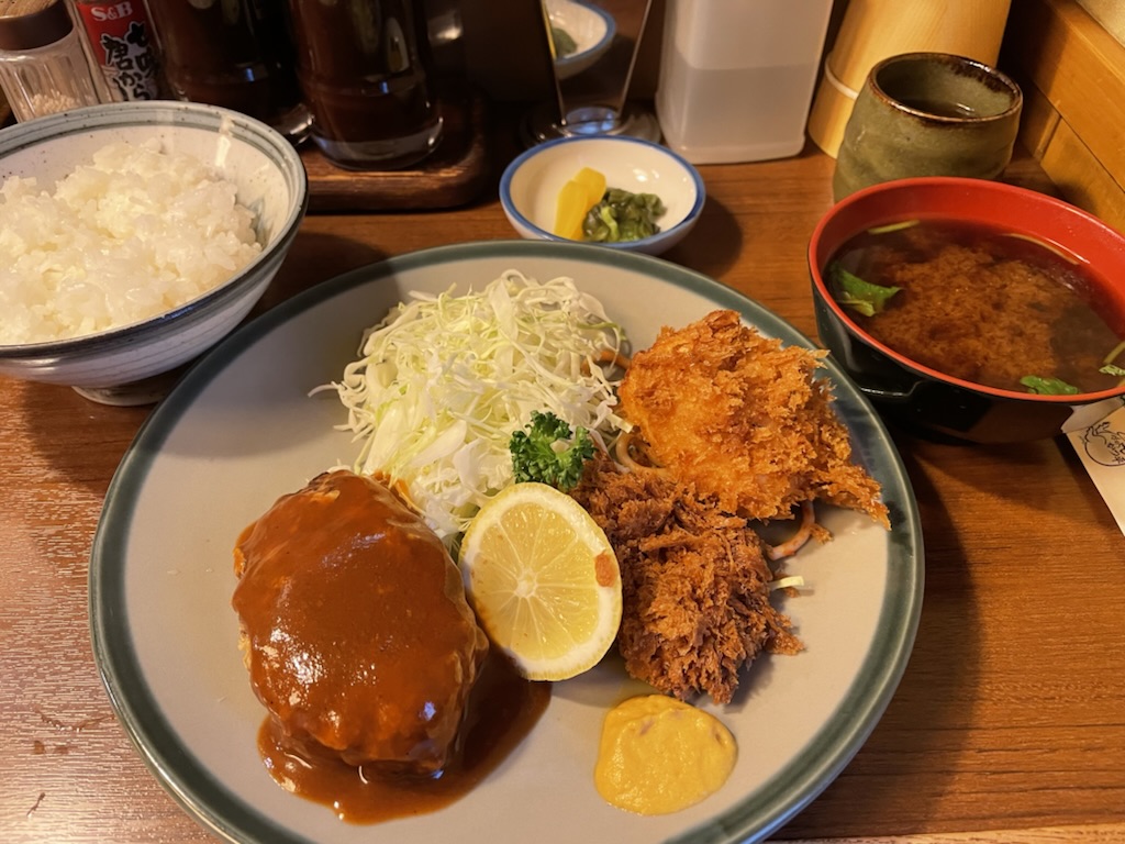 조그마한 톤카츠, 카니고로케, 함바그의 구성.