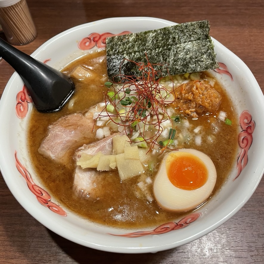 돈코츠 + 어류 스프에 생강을 토핑한 것이 특징입니다.