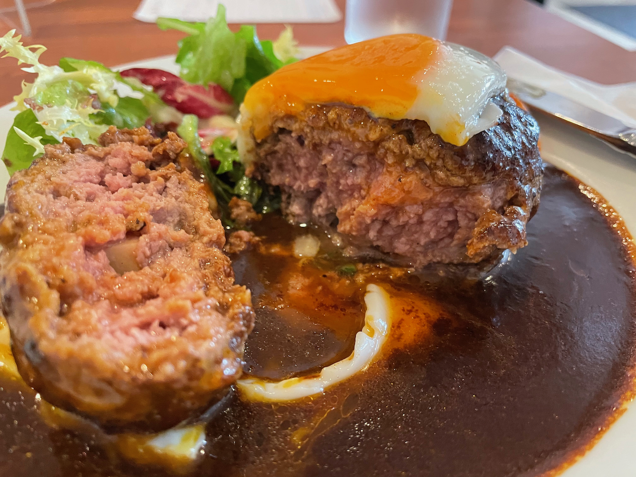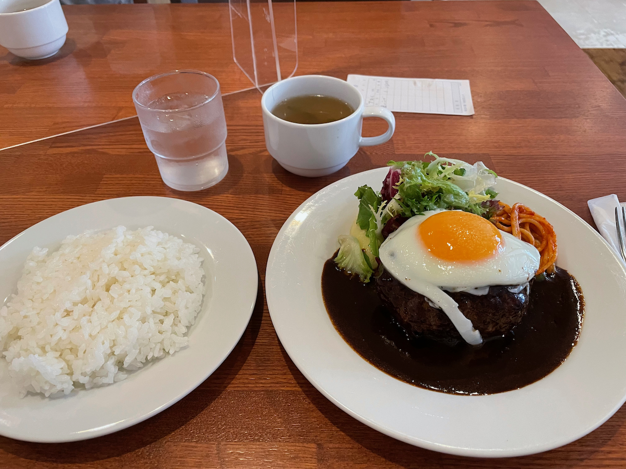 함바그를 주문. 1,300엔.