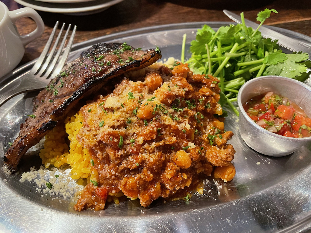 양고기라이스를 먹고 대 만족, 바로 다음날 다른 직원들을 데리고 방문, 비프스테이크를 먹었네요.