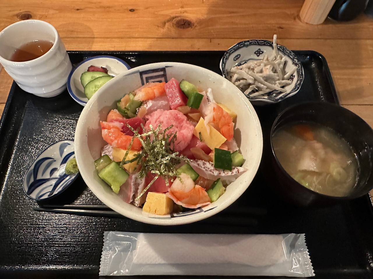 카키후라이 + 고로케의 週替わり와 카이센 치라시 사이에서 고민하다가 카이센 치라시를 선택.